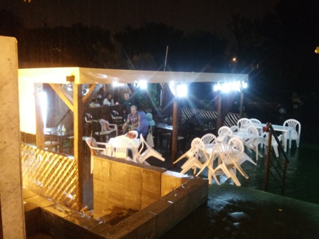 De laatste avond in de stromende regen met gasten uit Boekarest een uit Venlo een werkte elders en de ober was er.